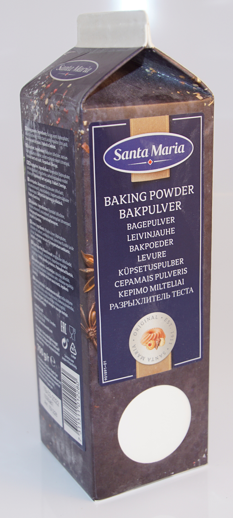 Ingredienser: bakpulver (difosfater, natriumbikarbonat), majsstärkelse,