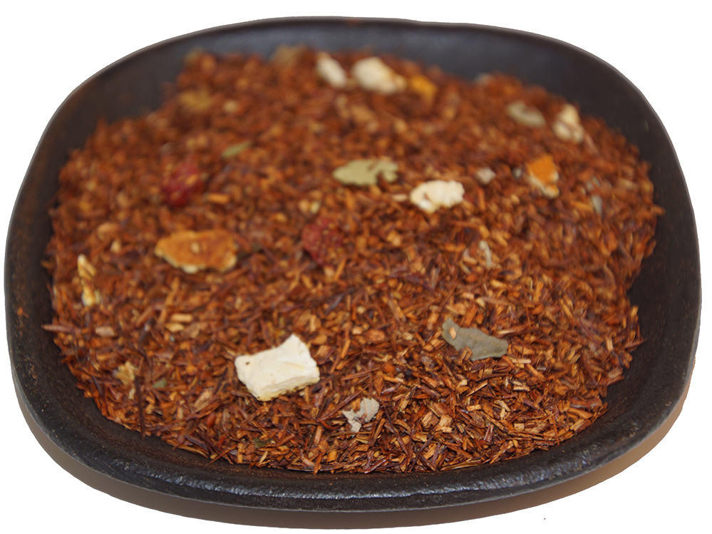 Ingredienser: Rooiboste, apelsinskal, jordgubbsbitar, jordgubbsblad och arom.
