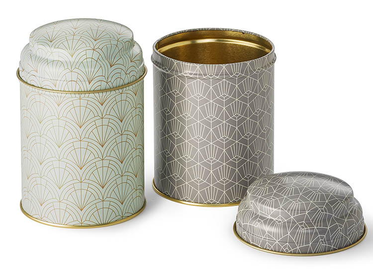 Art Deco rund burk 125g / 2 mönster