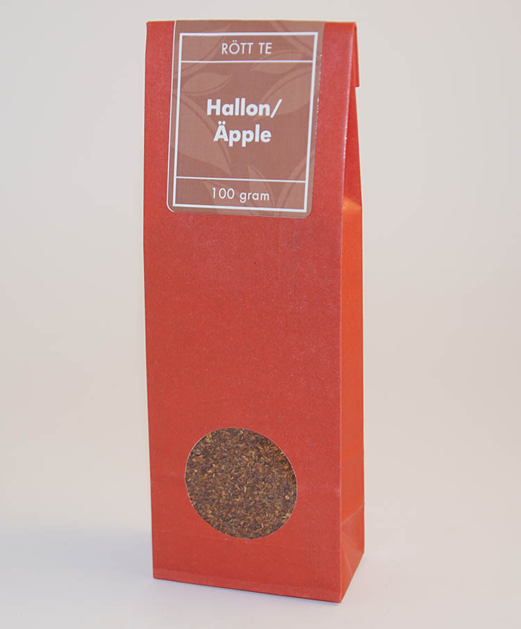 Ingredienser: Rött Rooibos-te, äppelbitar, hallonbitar och aromSmaksättning: Hallon och äpple