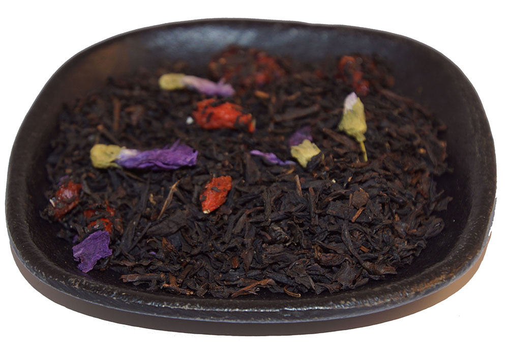 Ingredienser: Svart Kina-te, gojibär och blå malva och arom