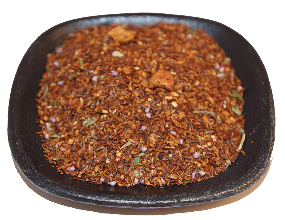 Ingredienser: Rött Rooibos-te, björnbärsblad, ljungblommor, kanelbitar, äppelbitar, arom